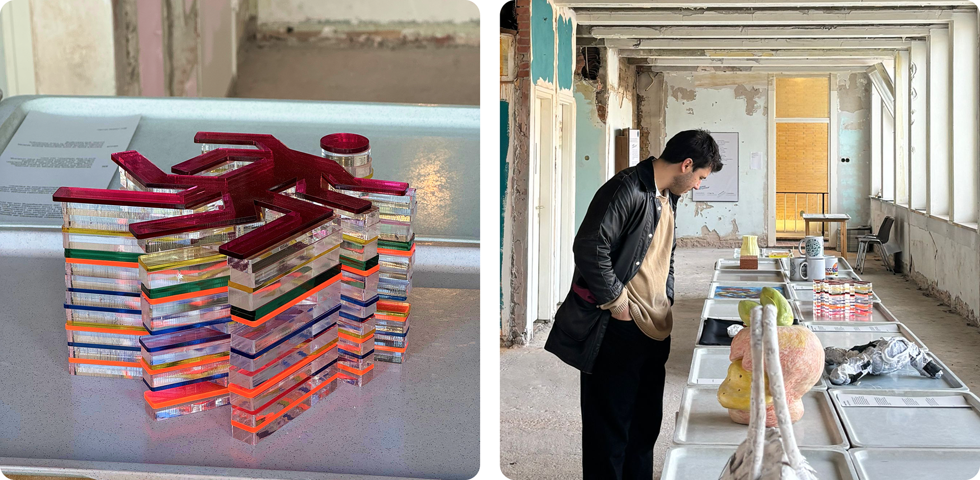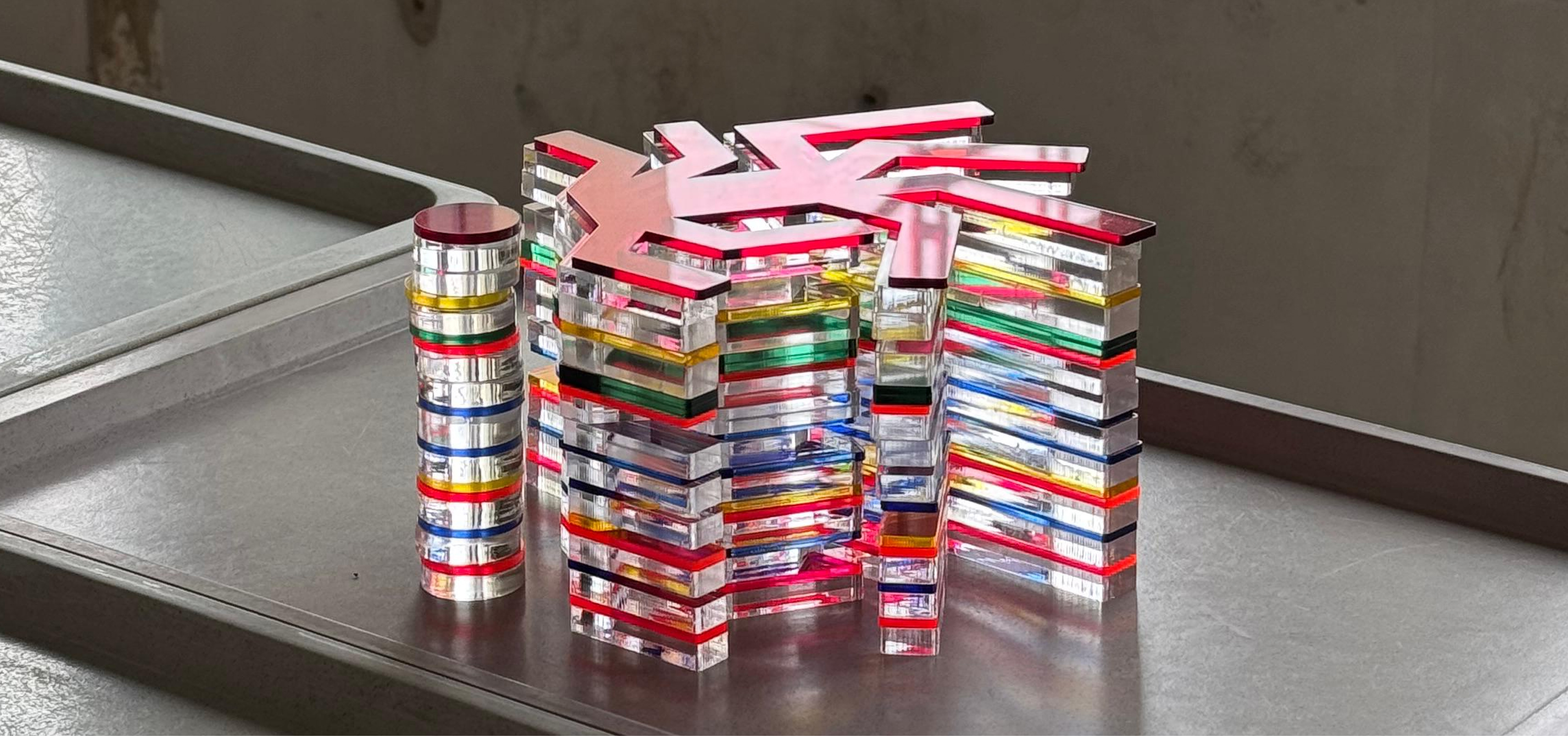 Overload was designed together with Nola Bokun (product/spatial designer). It captures the feeling of always going, never turning off, getting ahead of yourself. This idea is translated into a big stack of different acrylic pieces, varying in color, size, and design. Combined, they create a visual overload that mirrors the feeling of ‘unlimited’ and conformism.